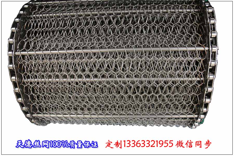 螺旋式網(wǎng)帶:是由不銹鋼棒條,不銹鋼螺旋網(wǎng)條,U型鏈條以及不銹鋼小帽組合而成。需人焊邊。常用的規(guī)格主要有300mm--1000mm寬,但也可根據(jù)客戶的需求進(jìn)行制造。一般用于食品速凍行業(yè)。